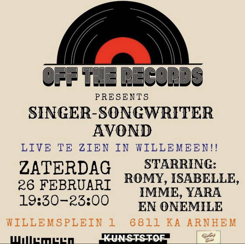 Optreden solo en met OneMile op de singer-songwriteravond in Willemeen Arnhem